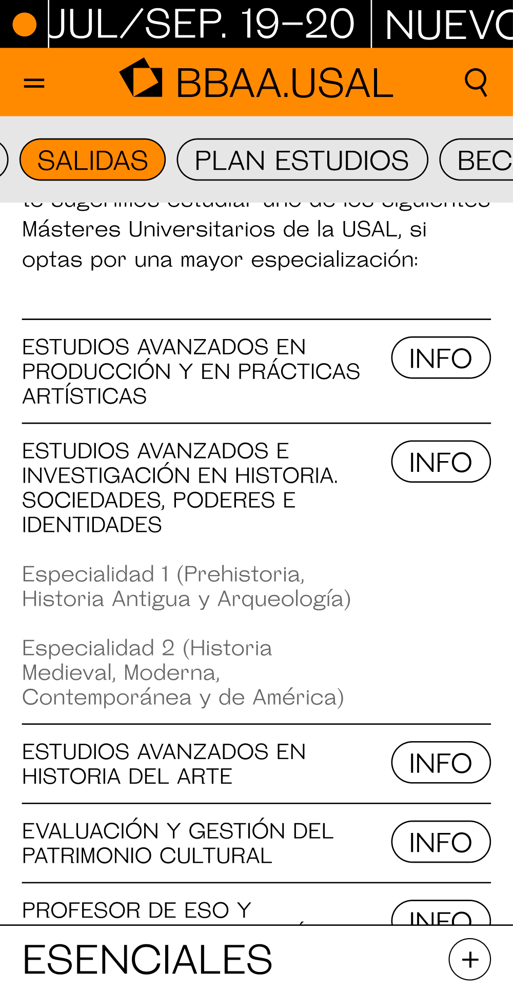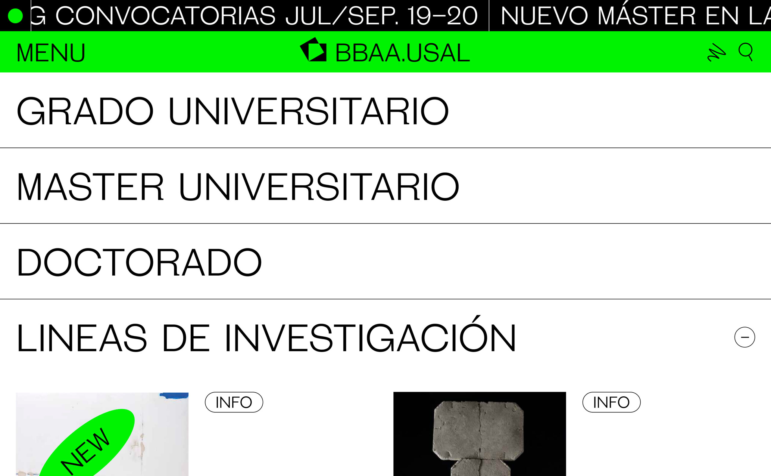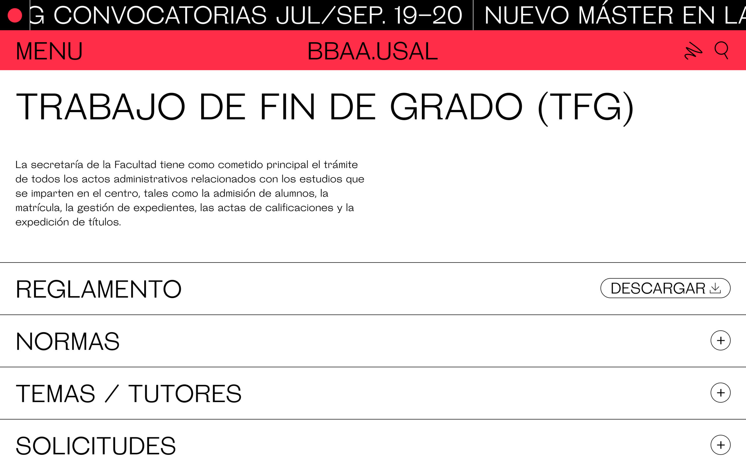 Diseño y dirección de arte de la web realizada para La Facultad de Bellas Artes de la Universidad de Salamanca, centro de Educación Superior especializado en la creación artística donde desplegar todo el potencial creativo.