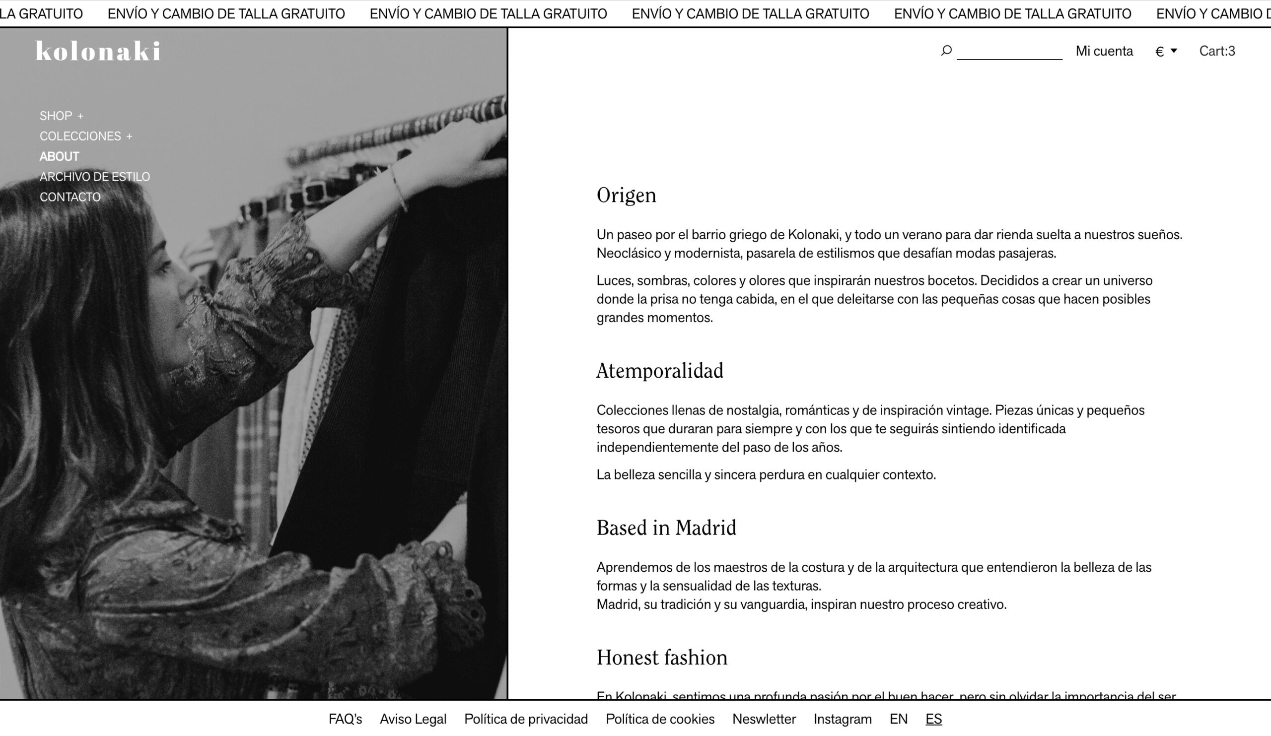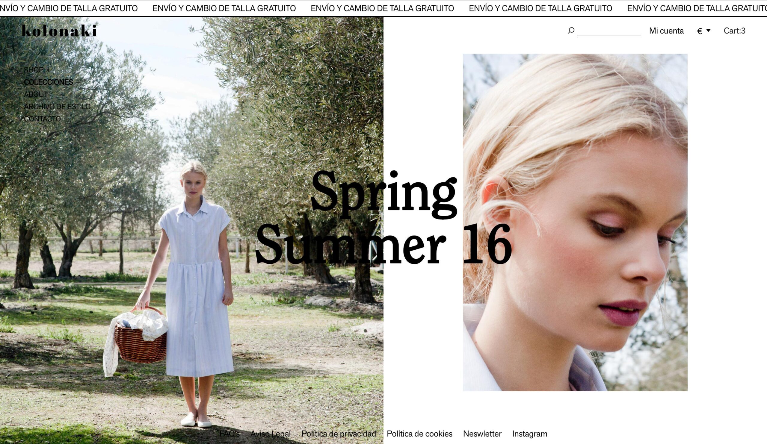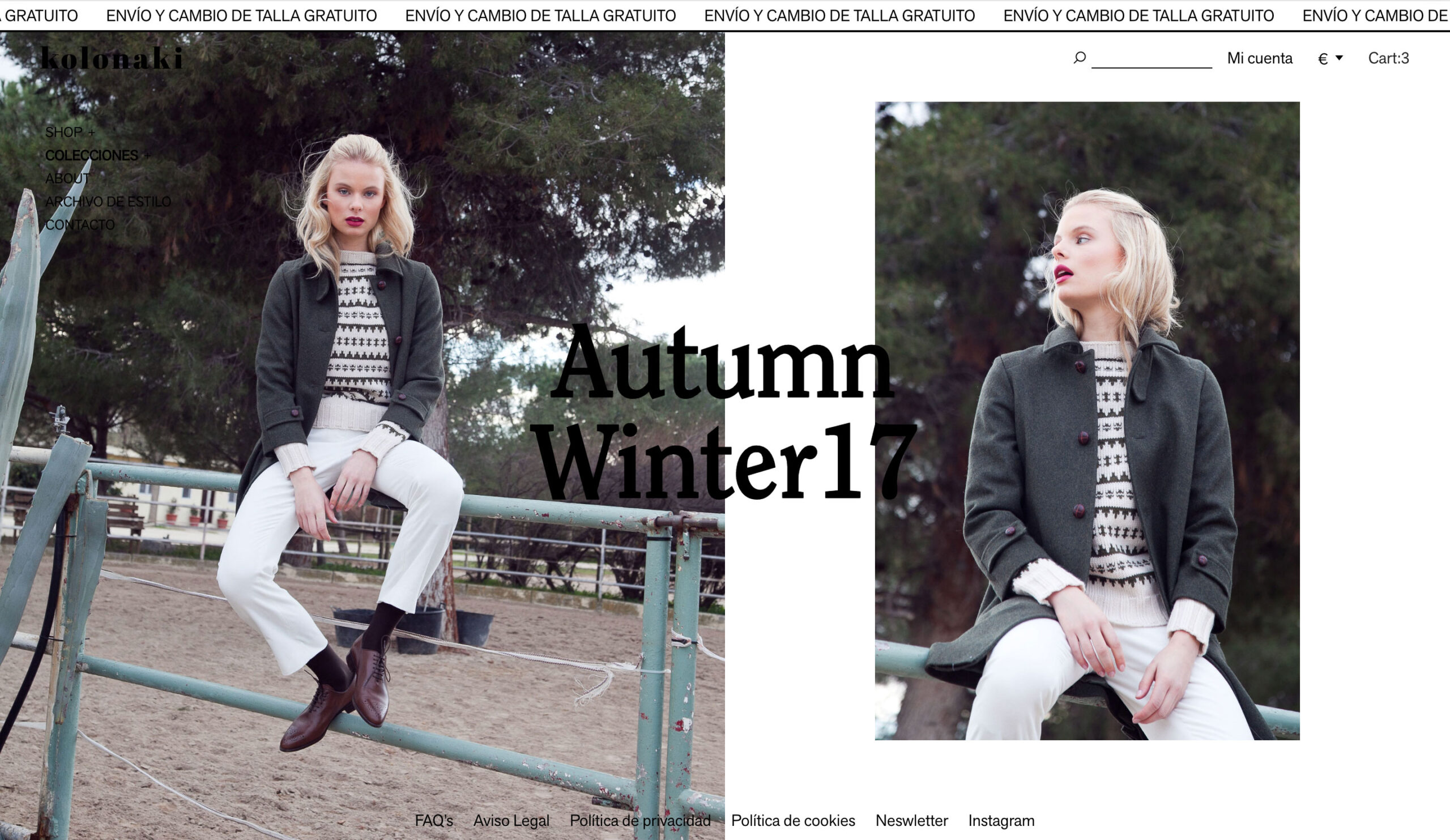 Diseño de e-shop para Kolonaki, marca de moda situada en Madrid.