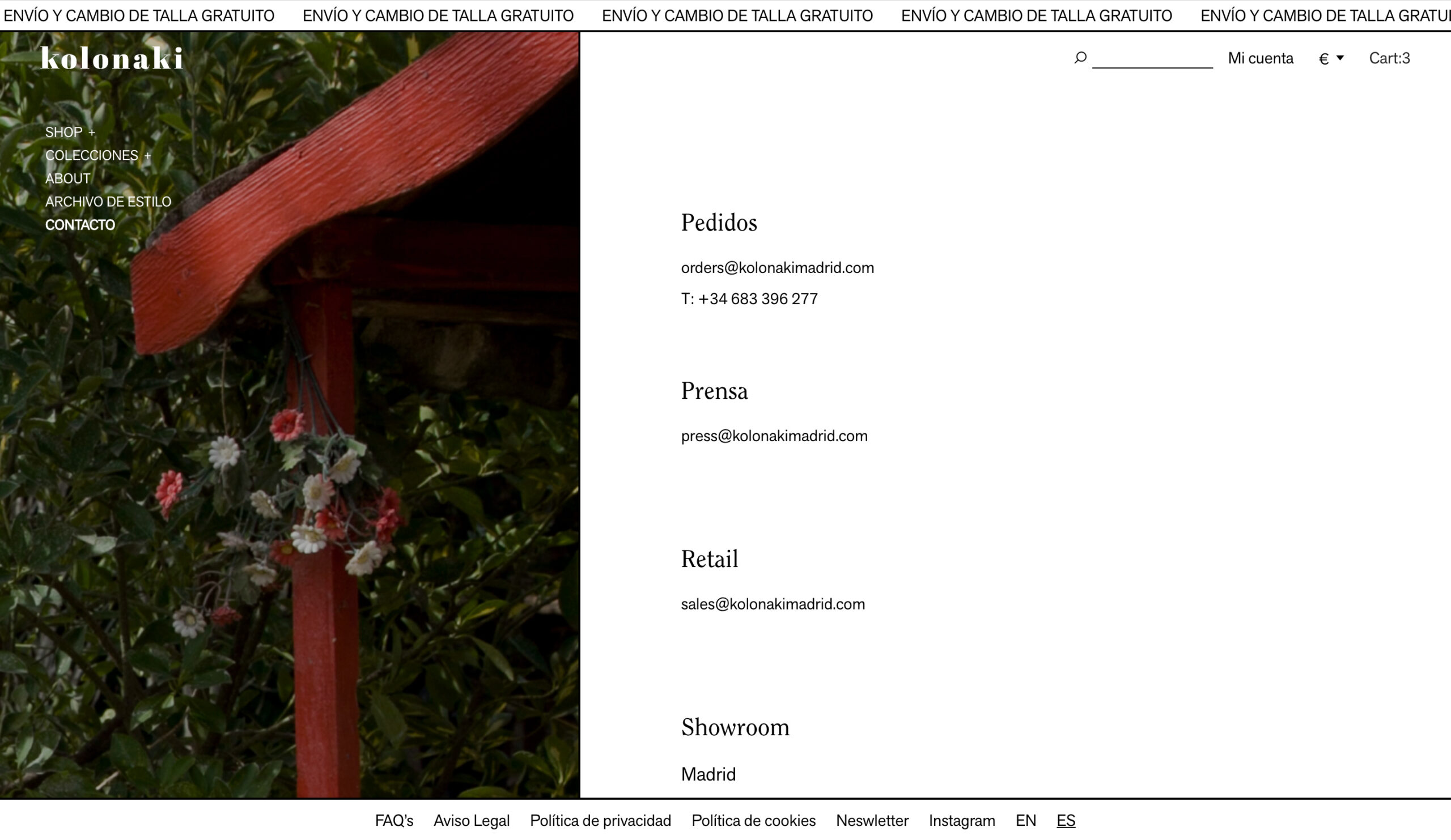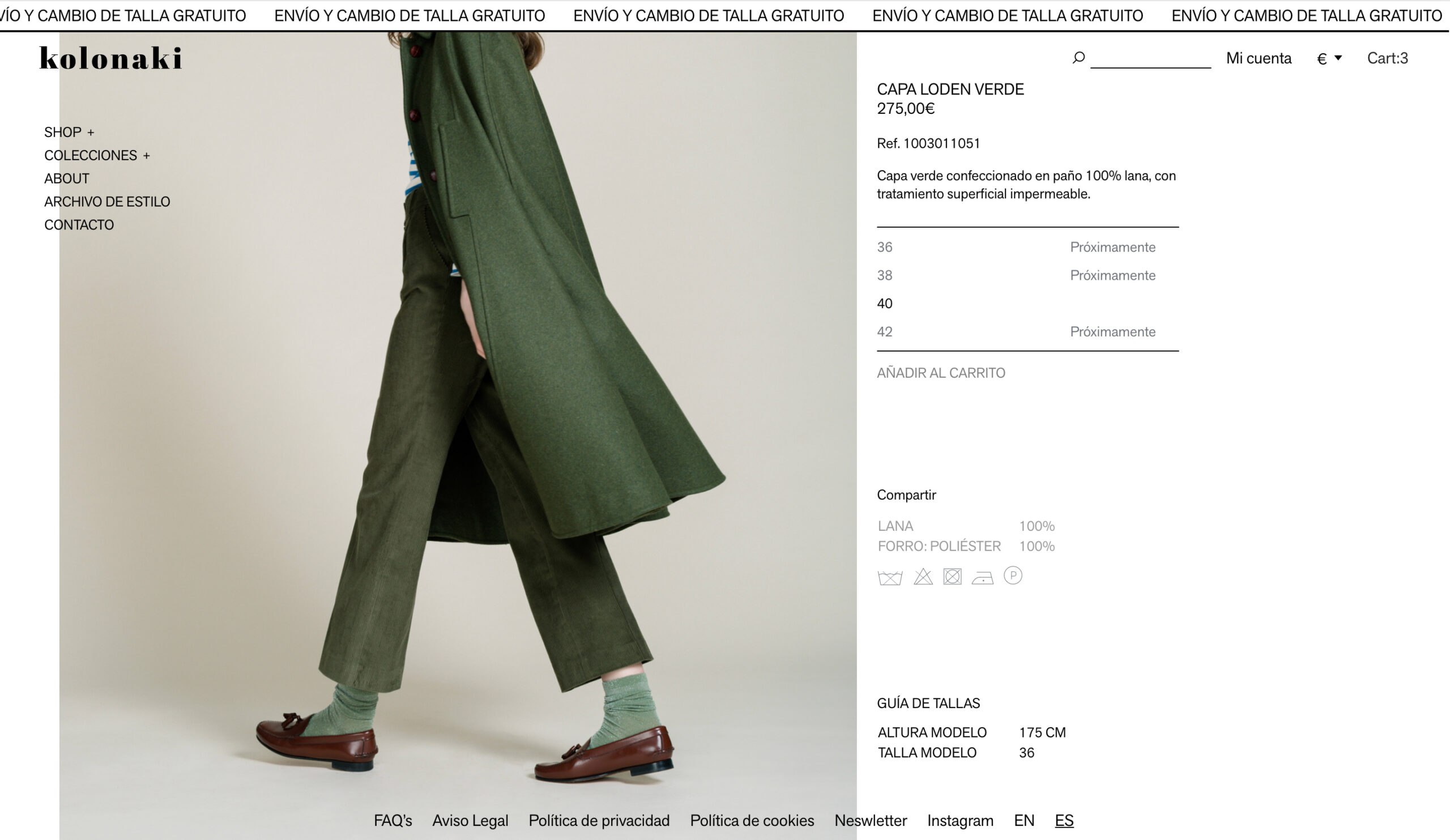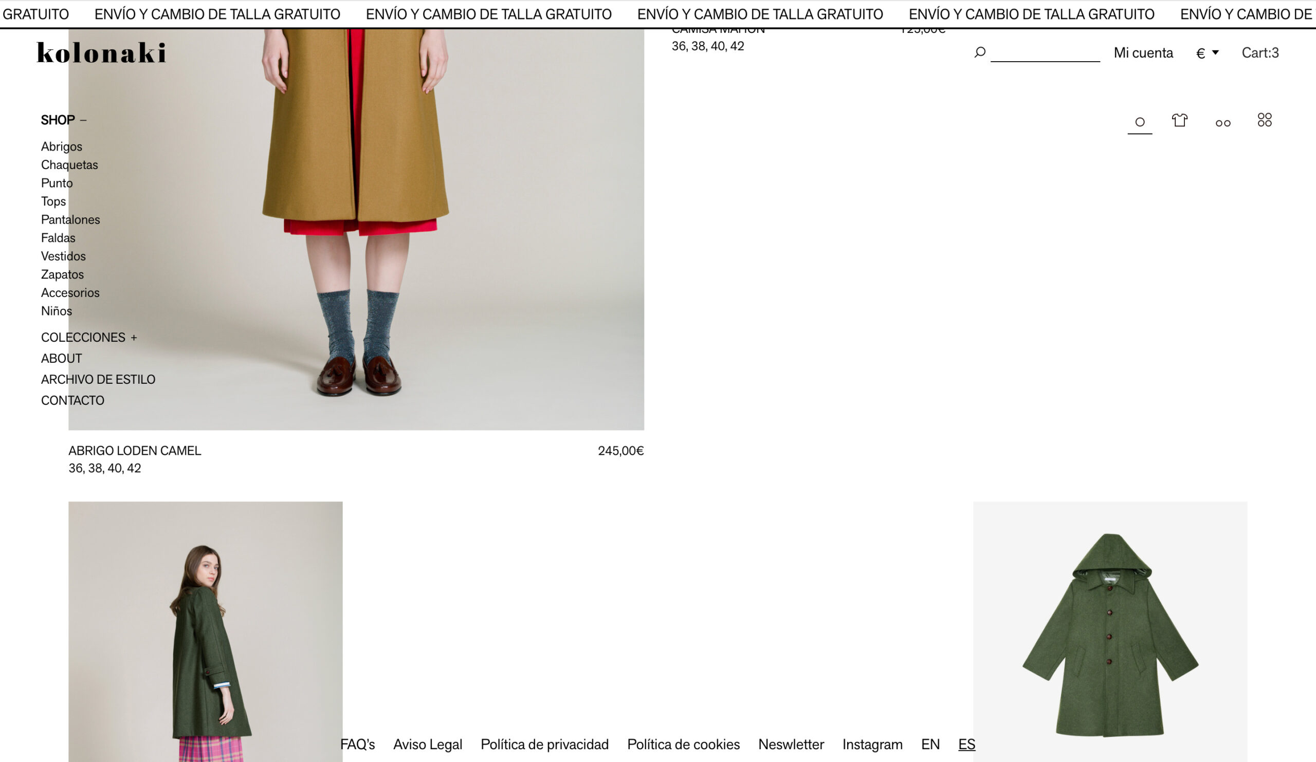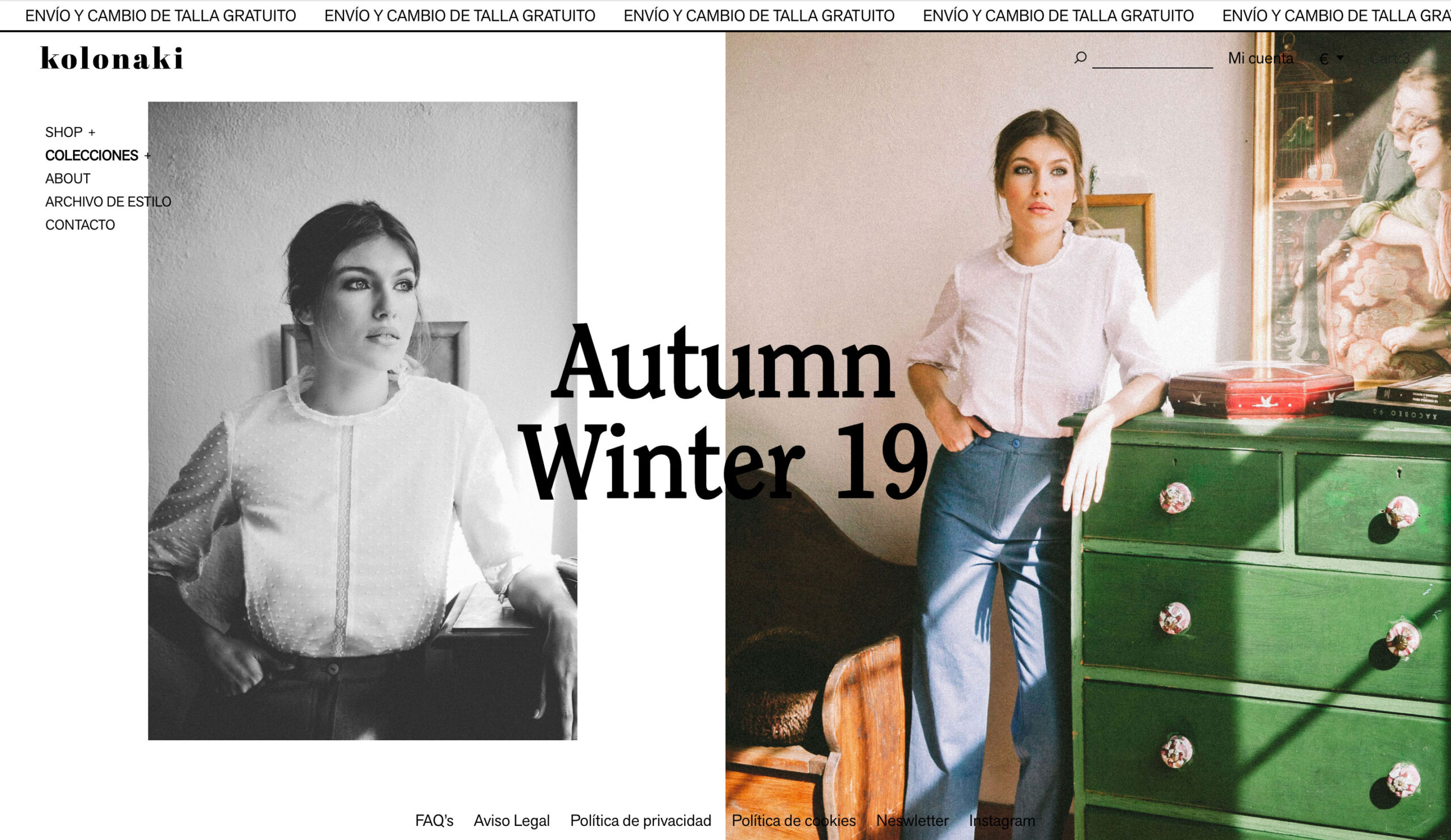 Diseño de e-shop para Kolonaki, marca de moda situada en Madrid.