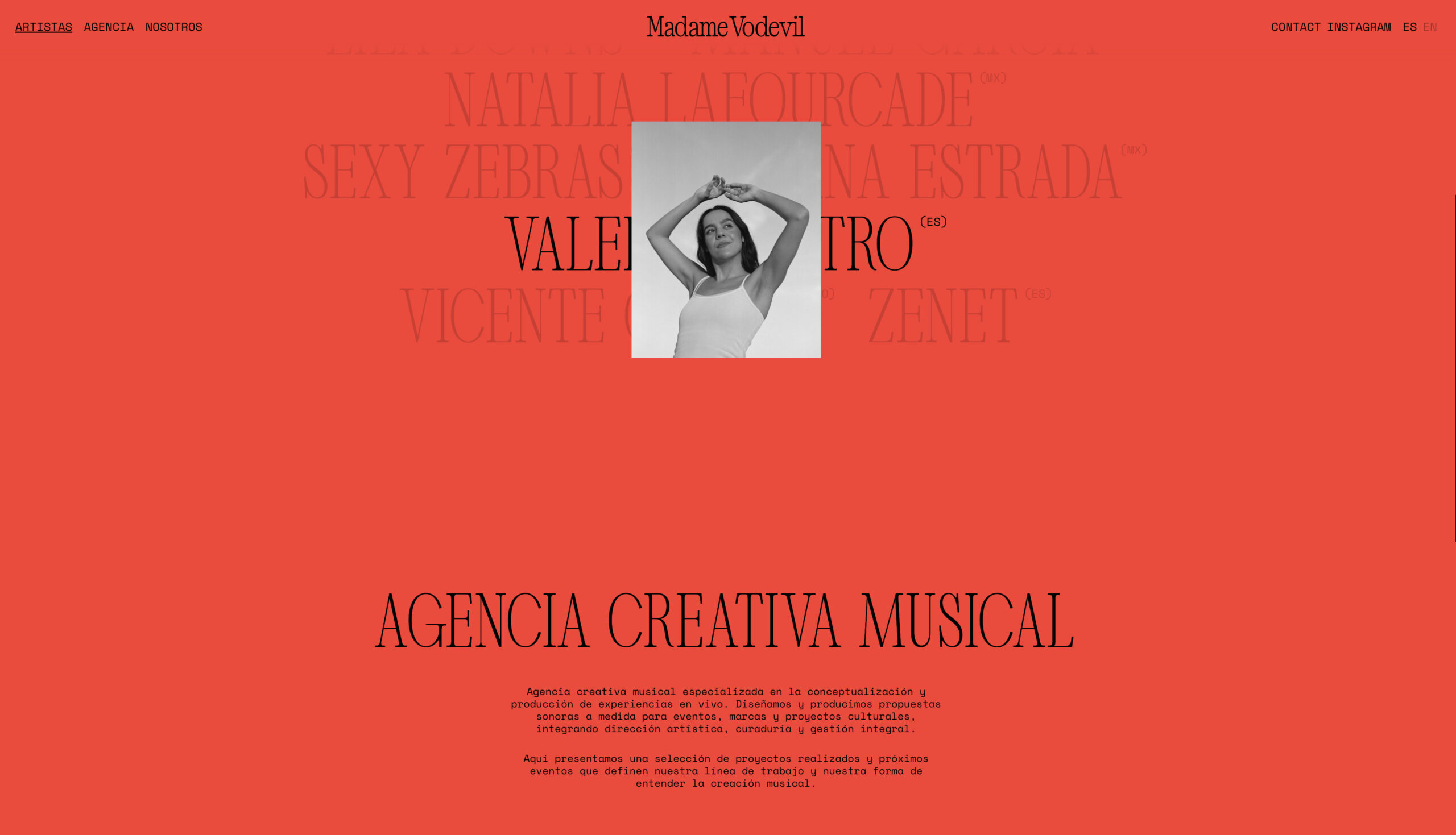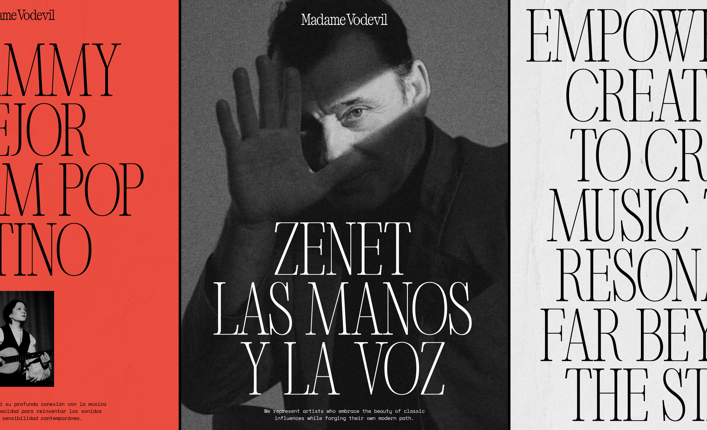 Proyecto de branding y diseño web para Madame Vodevil, agencia creativa musical que trabaja con artistas como Natalia Lafourcade, Crystal Fighters, Lila Downs o Carminho.