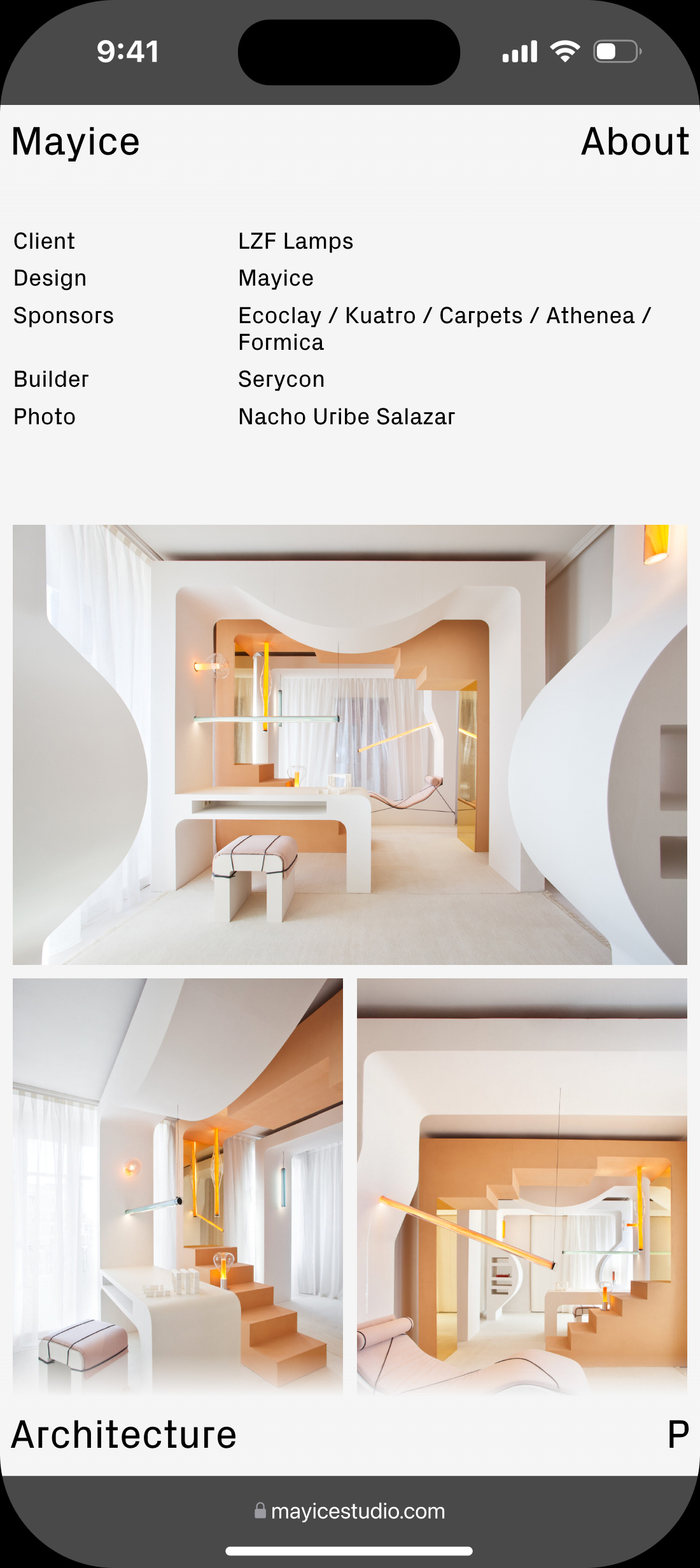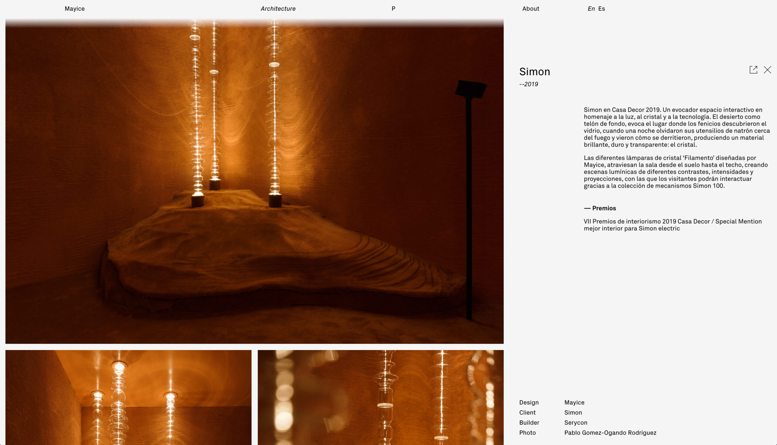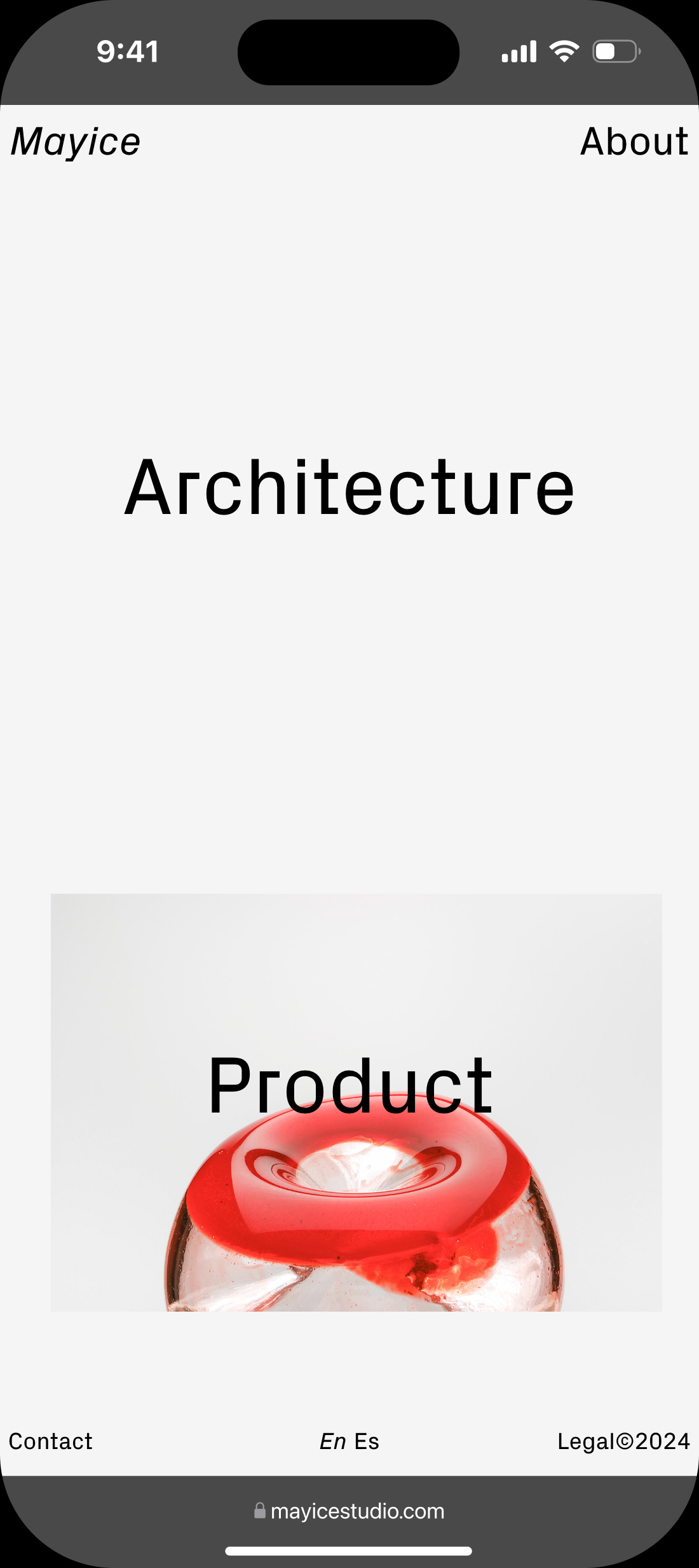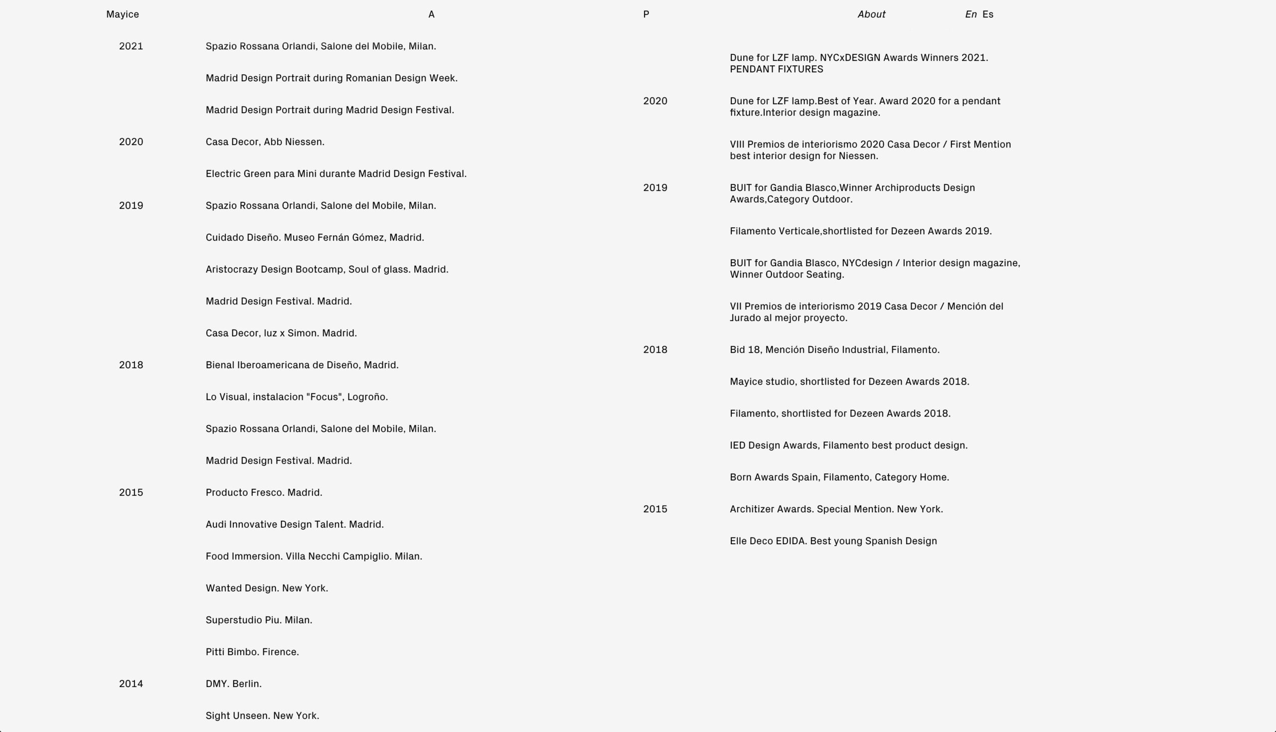 Diseño web para Mayice, estudio dedicado al diseño de producto y la arquitectura cuya esencia reside en el respeto por el alma de los materiales, su historia y funcionalidad, desde el primer boceto hasta el resultado final.