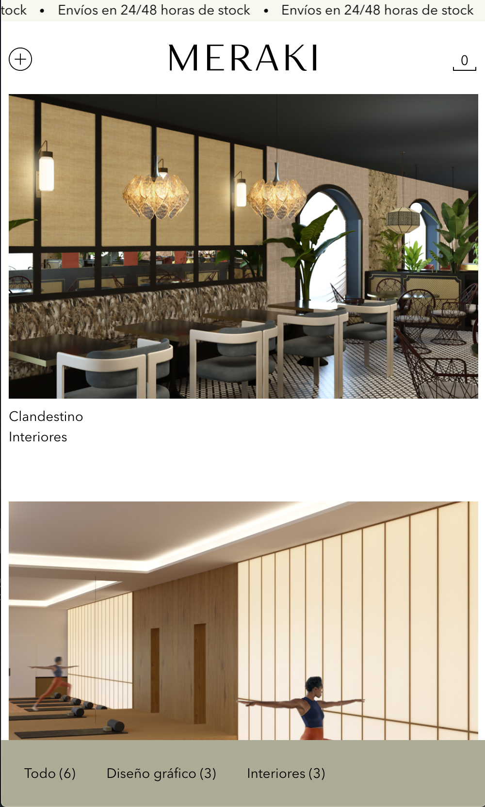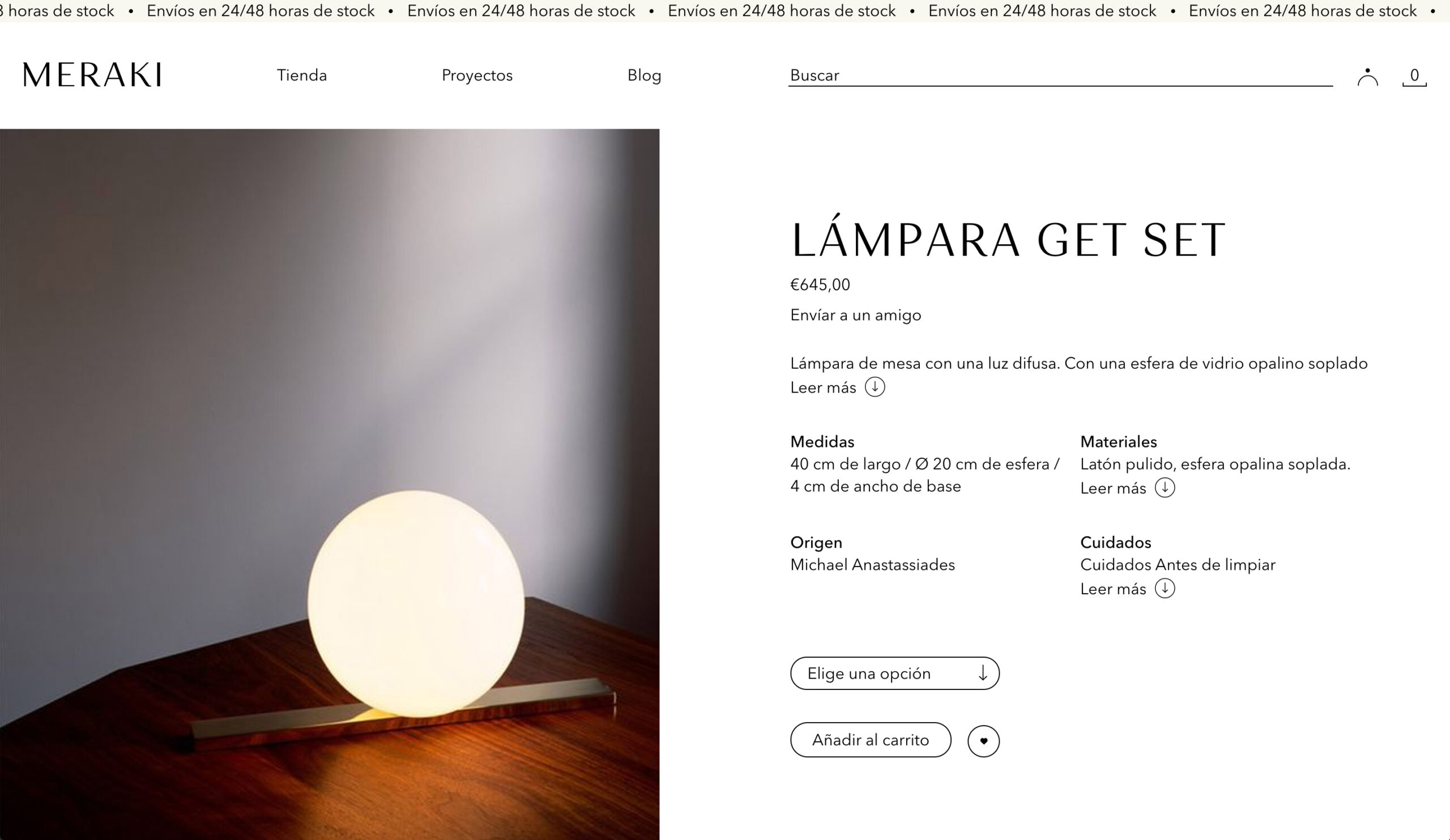 E-shop para Meraki, estudio-galería de diseño dedicada a la elaboración de proyectos de diferentes disciplinas del diseño como interiorismo, creación de mobiliario a medida, dirección de arte o diseño gráfico.
