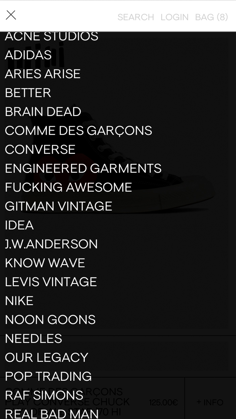 Referente en la exclusividad cuenta ediciones limitadas de diseñadores y marcas como Acne Studios, Comme de Garçons, Aries o Stüssy entre otras.