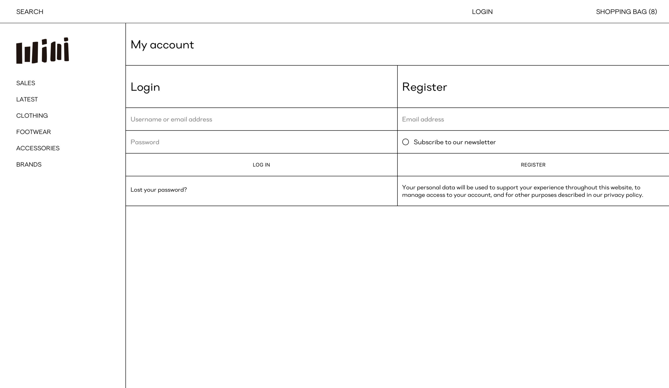 Diseño web para la e-shop de Minishop, tienda multimarca situada en Madrid.