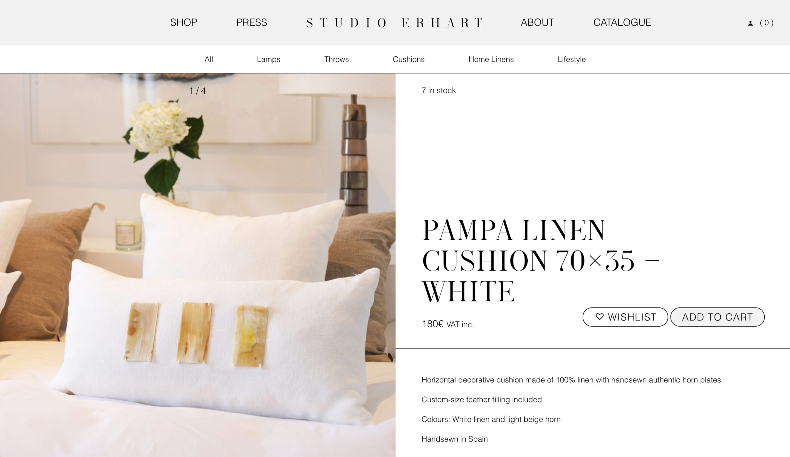 Diseño web de e-shop para Studio Erhart, marca de interiorismo familiar con sede en Madrid.