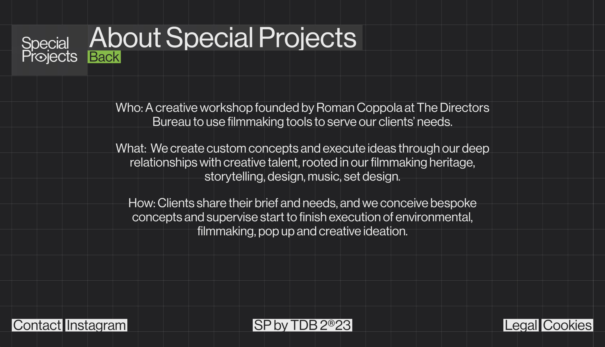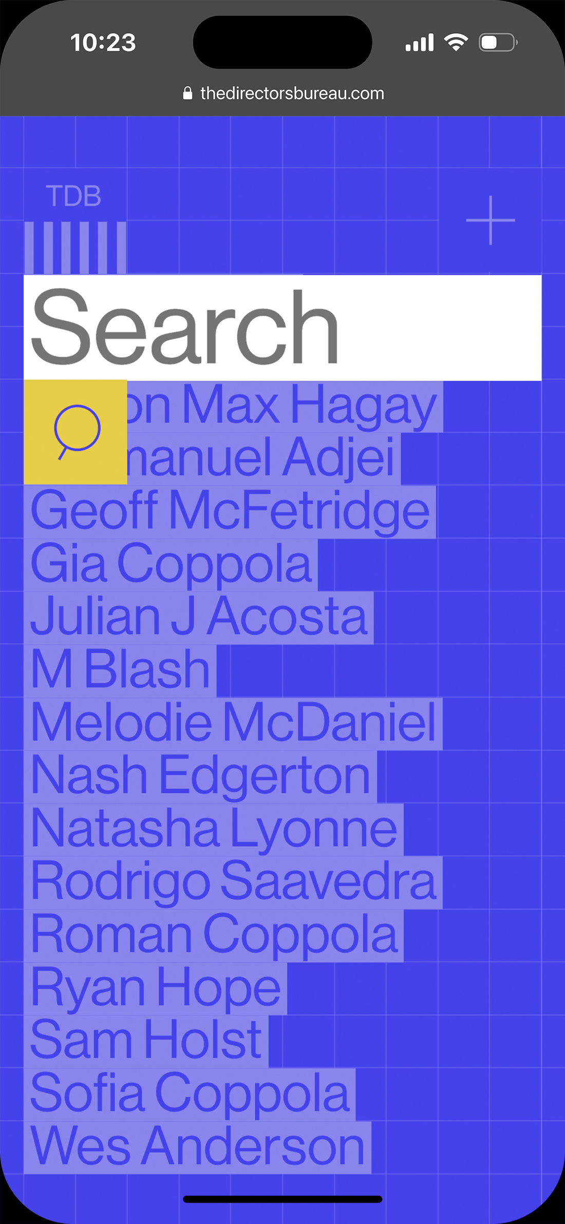 Diseño web para The Directors Bureau, reconocida productora fundada por Roman Coppola con sede en Los Ángeles, Londres y New York. La productora reune una excepcional lista de directores entre los que destacan Wes Anderson, Sofia Coppola, Emmanuel Adjei, Gia Coppola, Aaron Rose, Roman Coppola, M Blash, Rodrigo Saavedra, Augustus Punch, Doron Max Hagay o Sam Holst.