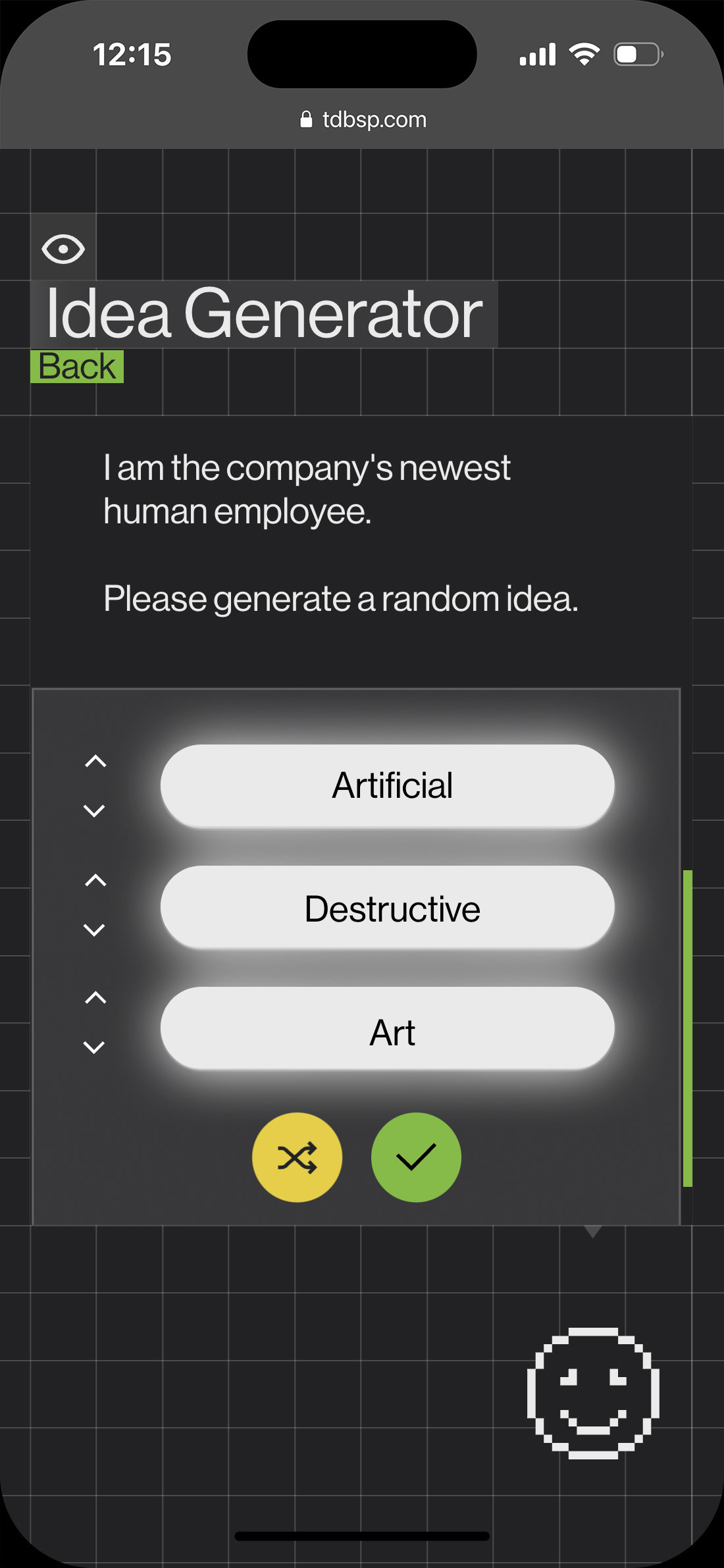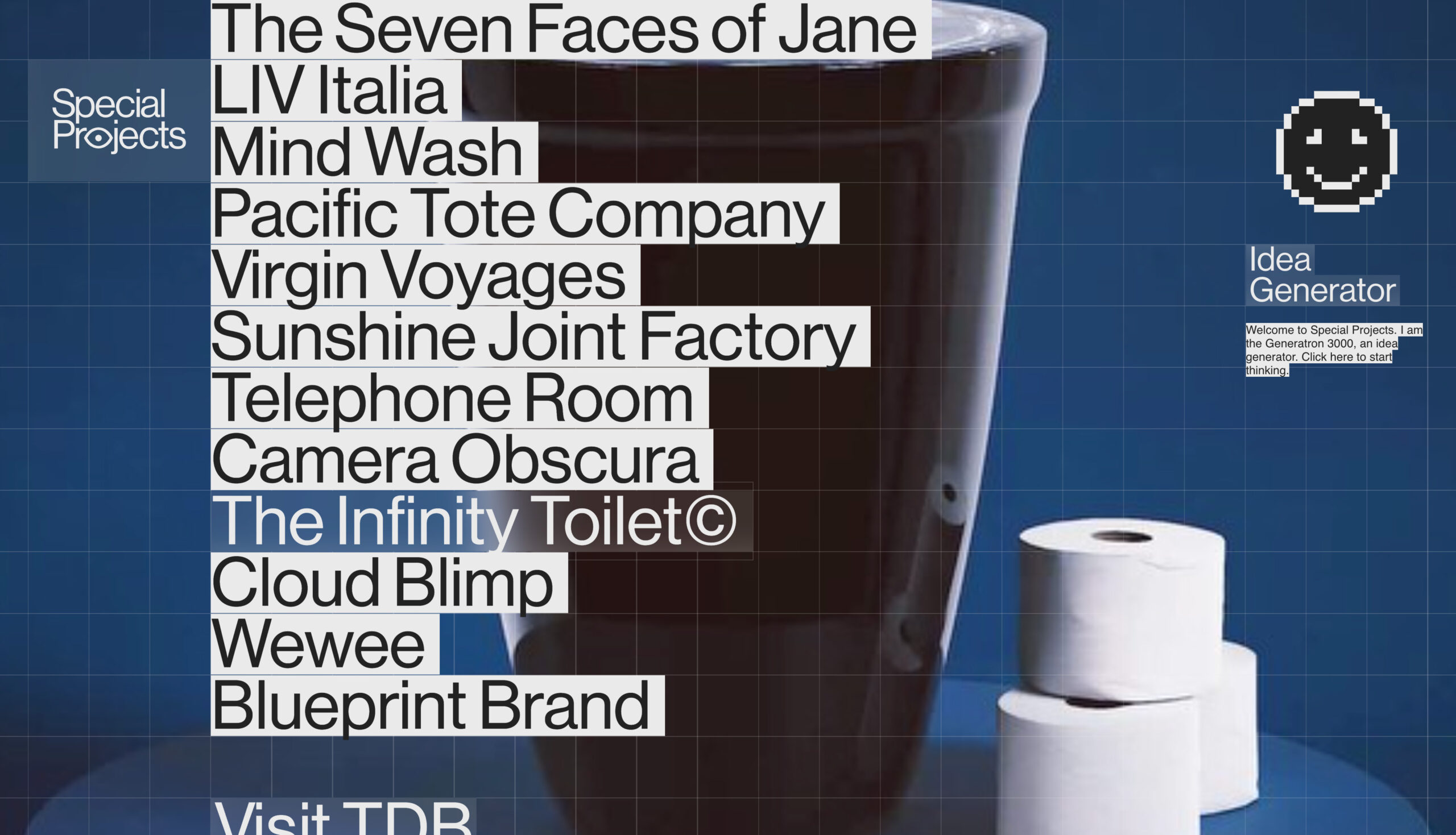 La web prioriza una navegación fácil y dinámica además cuenta con un easter egg: dónde el usuario puede jugar con la visualización de la web a partir de un panel de control.